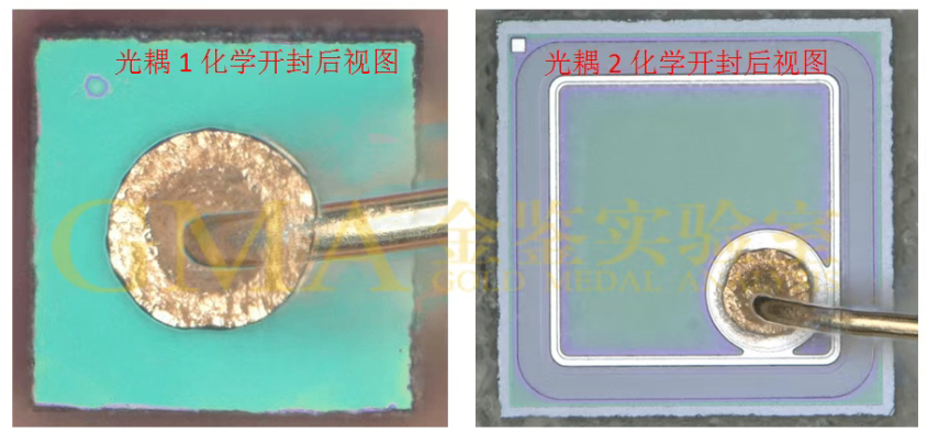 4.客户送测光耦器件,化学开封后可清晰看到光耦内部结构。