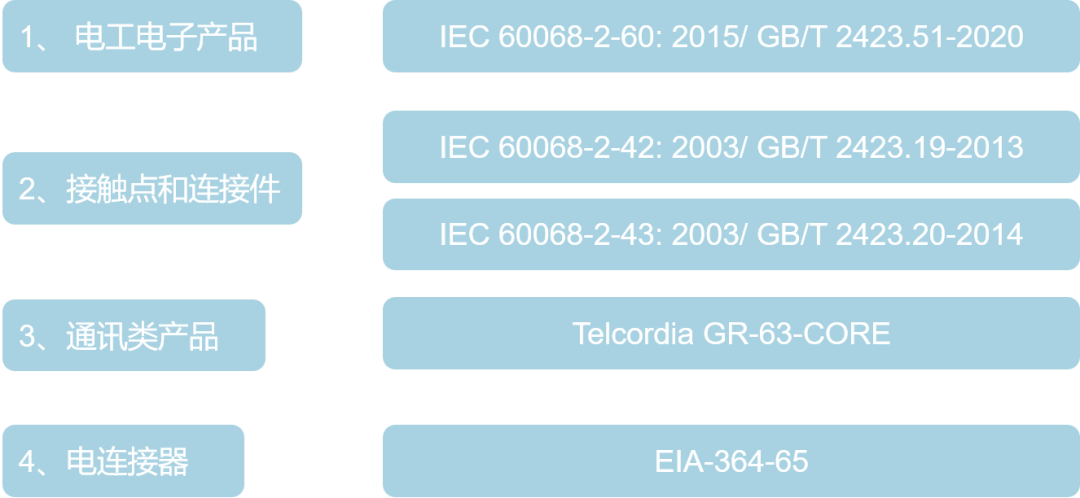 AEC-Q102车用光电半导体认证规范标准中流动混合气体腐蚀试验,参考IEC 60068-2-60标准,选用方法4,确定产品在大气环境下工作、储存的适应性、抗腐蚀能力。