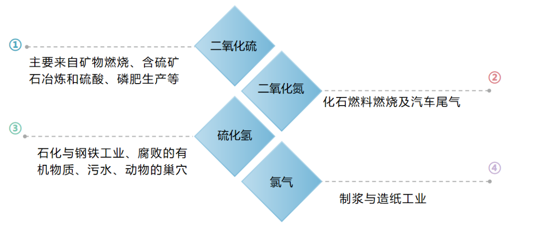 一切气体均具有自然界的起源,只是不同工作环境下占优势的气体污染物有所不同而已。