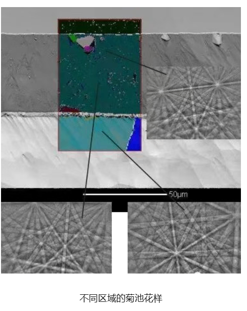 3.结果:经过氩离子抛光技术处理后的多层结构半导体材质样品,每层都能清晰地观察到,焊球的结构清晰可见。菊池花样表明制备出的样品表面质量高,为后续的EBSD分析提供了高质量的数据支持。金鉴实验室在样品制备方面积累了丰富的经验,能够为客户提供专业的样品制备服务,确保样品质量达到最佳状态,从而提高后续测试的准确性。