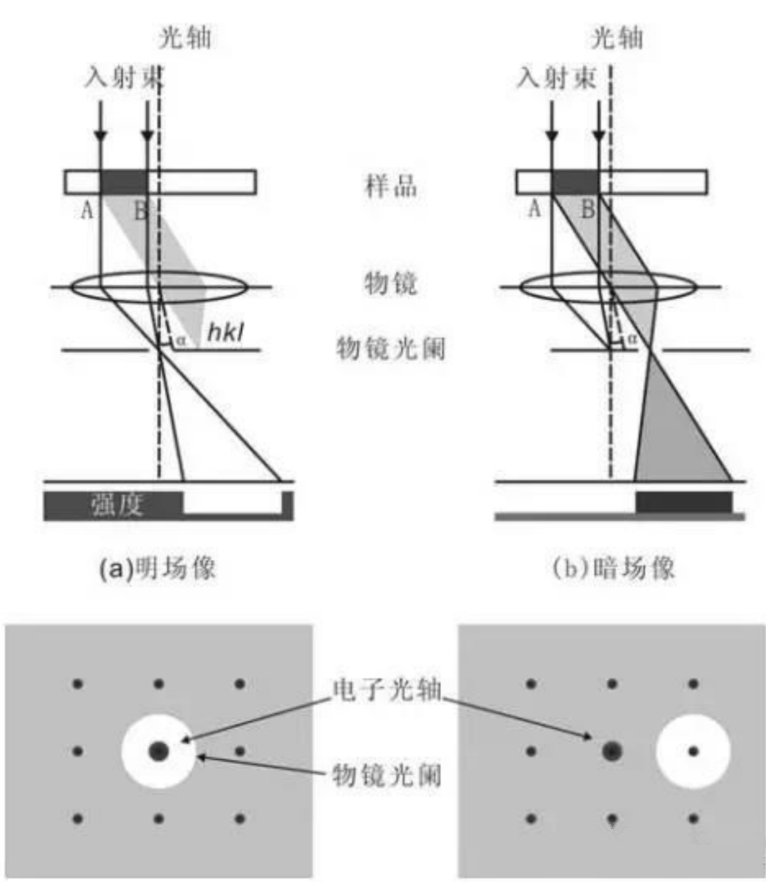例如:粗细均一的试样在明场像A,B区相差不大。但当暗场像的A区符合布拉格方程时,A区的亮度是看得见的;并且B区不符合布拉格方程则暗淡无光,由此被识别出来,如图5。PS:明场,暗场不是一般电镜所独有,STEM里还有明暗场。金鉴实验室在TEM测试方面具有丰富的经验,实验室拥有一支由国家级人才工程入选者和资深技术专家组成的团队,能够针对不同的材料提供具体的解决方案。