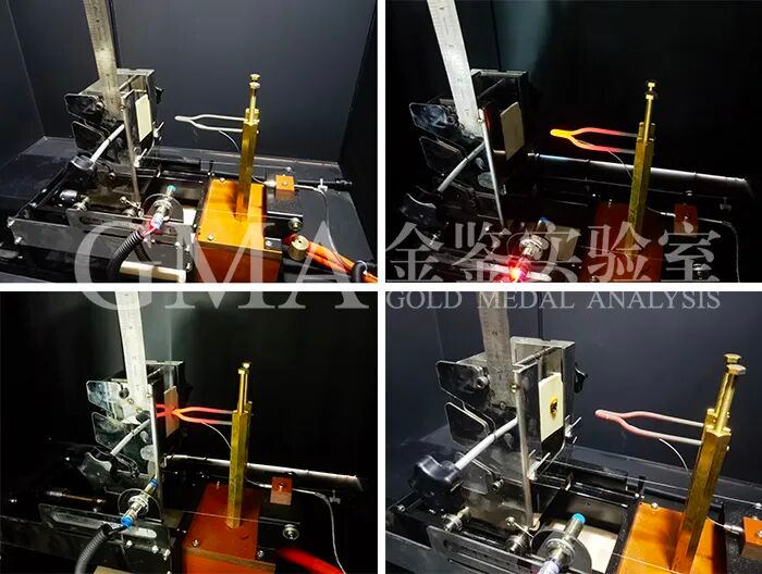1.灼热丝试验灼热丝试验是一种模拟热源或点火源引起的热应力的测试方法。试验中,将直径为4mm的镍铬丝(U型灼热丝头)通过大电流加热至规定温度(300℃-1000℃),然后以1.0N的压力水平灼烫试品30秒。金鉴实验室技术人员会密切观察试样和铺垫物的起燃情况,凭借丰富的经验和专业知识,准确评估电工电子设备成品的着火风险,帮助您提前防范潜在风险。