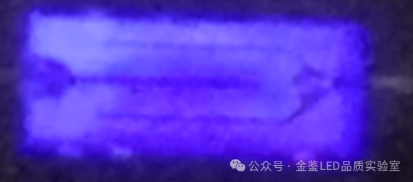 金鉴随机取1pc漏电灯珠进行化学开封,使用3V/50uA直流电通电测试,发现灯珠存在电流分布不均现象,负极周围亮度较低。