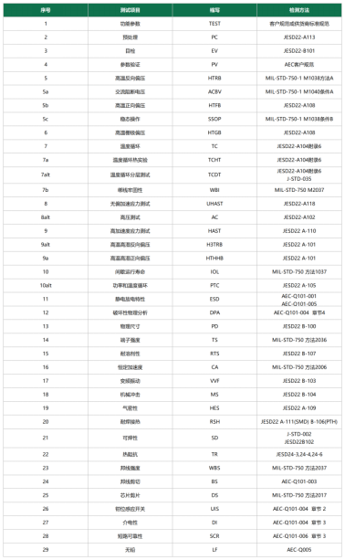 这些测试项目确保了离散半导体元件能够在汽车行业中提供所需的可靠性和耐久性,满足汽车行业对高性能和安全性的严格要求。制造商通过这些测试可以确保其产品符合AEC-Q101标准,从而保证产品在汽车环境中的稳定性和可靠性。