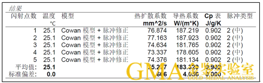 1.垂直方向导热系数测量铝基板是常用的一种散热基材,在LED灯具中,它垂直方向的导热系数关系着整个灯具的散热性能。但常规的稳态热源法,对于高导热的纯铝基板测试存在较大误差,因此,选择采用激光法能有效规避这个问题。