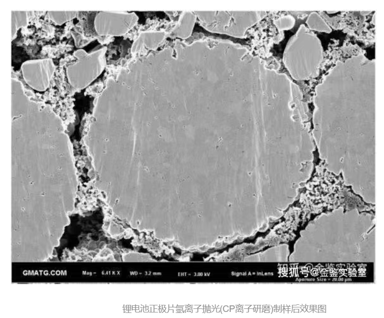 锂电池正极片氩离子抛光(CP离子研磨)制样后效果图