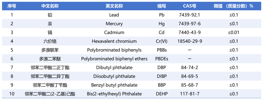 依据标准GB/T 26125-2011《电子电气产品 六种限用物质的测定》及新国标的要求,主要管控物质及其危害包括:
