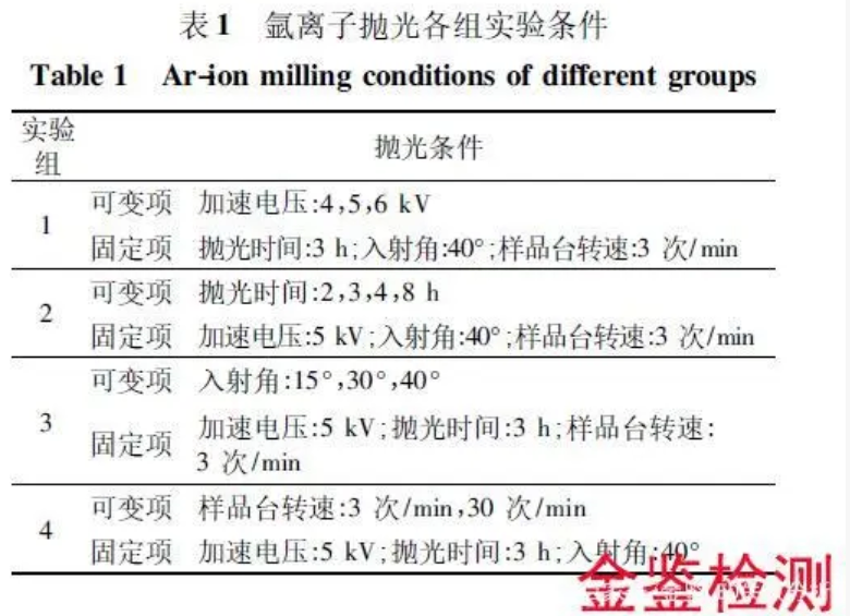 在实验过程中,参数的优化是获得高质量抛光面的关键。研究表明,较低的加速电压(4~5 kV)有利于获得更好的抛光质量,这是因为较低的电压可以减少离子束对样品表面的损伤,同时避免过度刻蚀。抛光时间的延长可以改善样品表面的平整度,但当抛光时间超过一定阈值后,表面平整度反而会降低,这可能是由于长时间的离子束轰击导致样品表面的微观结构发生变化。此外,较大的离子束入射角(15°~40°)有助于获得更平整的抛光面,因为较大的入射角可以使离子束更均匀地作用于样品表面,减少局部过抛光或欠抛光的现象。而较低的样品台转速(3次/min)条件下的抛光效果优于高转速条件下的,这是因为较低的转速可以使样品在抛光过程中更加稳定,减少因样品台快速旋转带来的振动和不均匀抛光问题。