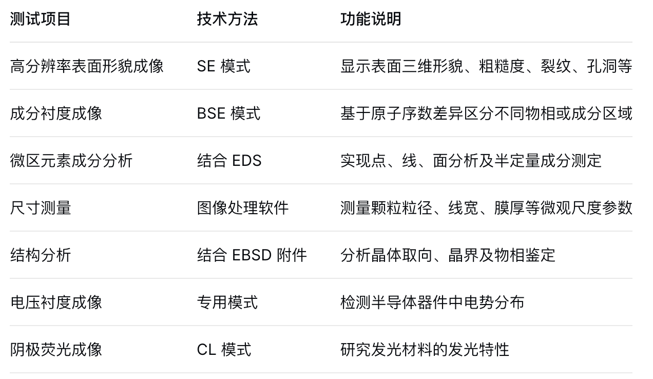 研究人员应根据具体分析目标选择合适技术:如关注表面形貌可选用 SEM,需原子级结构则选用 TEM,成分分析可结合 EDS,晶体取向与织构研究则适用 EBSD。