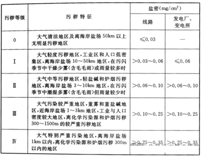 污秽程度也称污秽等级,指的是设备所处的环境状况。为准确确定电气间隙和爬电距离,通常将污秽程度划分为四个污染等级,即1、2、3、4级。