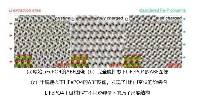 (c)半脱锂态下LiFePO4的ABF图像,发现了Li和Li空位的阶结构
