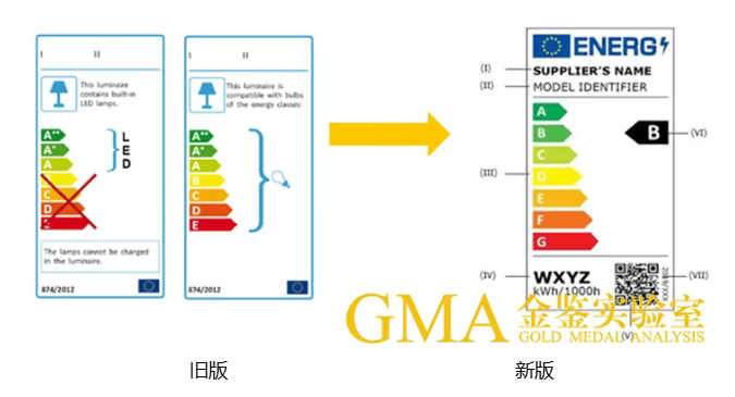 新版能效标签 EU 2019/2015指令相对于旧版指令的主要差异:能效等级的计算从EEI指数改为ηTM (lm/W),更加直观;能效等级的划分改为从Class A到Class G;更高的能效要求,如之前的Class A++只相当于现在的Class E。