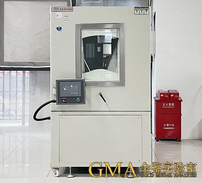 防尘测试的目的是评估产品外壳对固体颗粒的防护能力。这一测试在特制的防尘箱内进行,使用滑石粉作为测试介质。