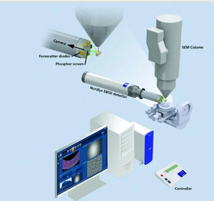 EBSD系统通常集成在扫描电子显微镜(SEM)中,其基本组成部分包括: