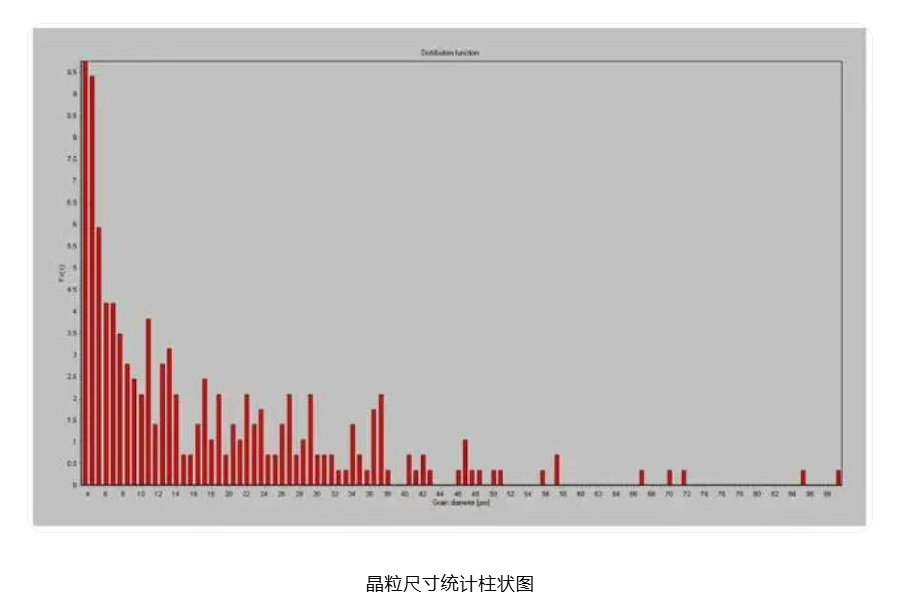 3. 晶界分析:通过GB图和晶粒尺寸统计柱状图,分析晶粒边界和晶粒尺寸。