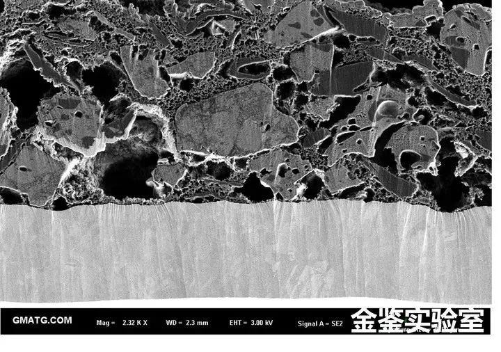 而经过金鉴实验室氩离子抛光后,损伤层被完全去除,内部结构清晰可见,孔隙度也能够准确测量,从而为材料的吸液性和寿命分析提供了可靠依据。