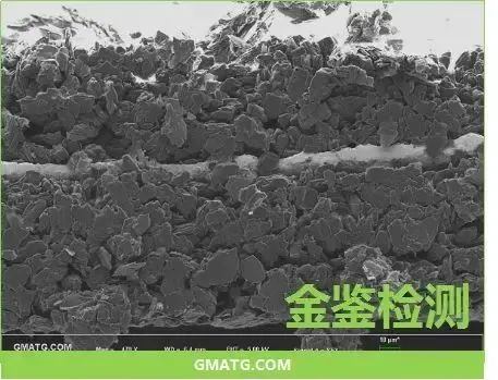 某石墨生产厂家委托金鉴实验室对其石墨极片进行氩离子抛光截面制样。通过氩离子抛光技术,可以清晰地观察到电极材料涂片的内部结构。抛光前,由于样品是用剪刀剪切而成,截面上的损伤层较大,无法看清真实的内部结构。金鉴实验室拥有专业的氩离子抛光切割设备和技术团队,能够确保制样的准确性和可靠性。