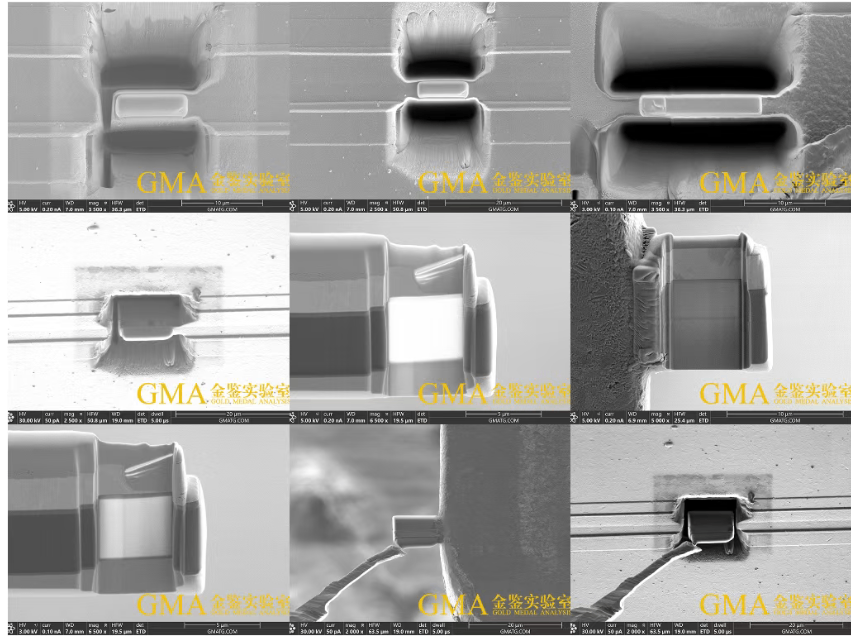 成像功能的实现依赖于样品表面的二次电子和二次离子。当离子束轰击样品表面时,会激发出二次电子和离子,通过检测这些信号,可以生成高分辨率的图像。切割功能则是通过离子束与样品原子的碰撞溅射来完成。离子束的能量足以使样品原子被溅射出来,从而实现对样品的精确切割和加工。沉积功能则借助化学气体注入系统(GIS)来实现。通过在样品表面注入含金属的有机前驱物,并在离子束的作用下使其分解,从而实现金属的沉积或增强刻蚀。金鉴实验室拥有专业的FIB技术,实验室拥有一支由国家级人才工程入选者和资深技术专家组成的团队,能够针对不同的样品提供具体的解决方案。