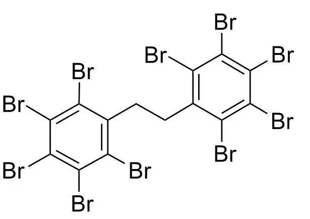其溴含量高,热稳定性好,抗紫外线性能佳,渗出性低,特别适用于生产电脑、传真机、电话机、复印机、家电等高档材料的阻燃。然而,DBDPE 的广泛使用也带来了环境污染与毒性效应问题,其结构式为:
