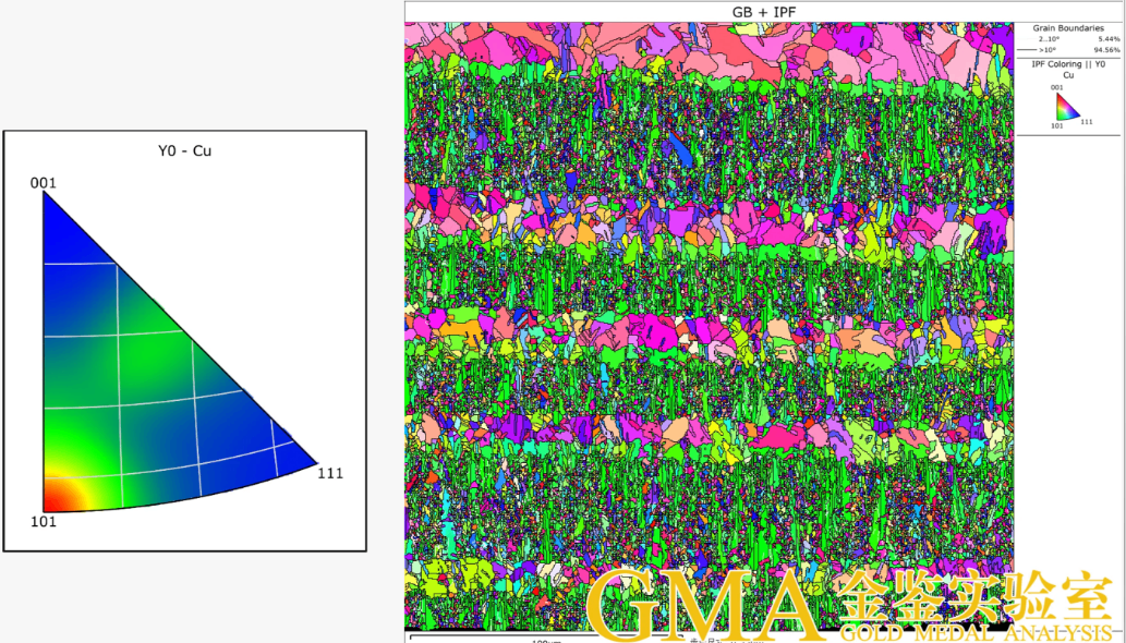 晶粒作为材料中的基本结构单元,其尺寸和取向对材料的性能有着深远的影响。晶粒内部的取向相对一致,而相邻晶粒之间则存在明显的取向差异。晶粒尺寸的测量对于材料的开发和应用至关重要,因为它直接关系到材料的强度和韧性。EBSD技术以其高分辨率的晶界成像能力,成为研究晶粒尺寸和晶界特征的首选方法。金鉴实验室作为专注于材料分析领域的科研检测机构,凭借其卓越的专业能力和先进的技术设备,在这一领域的研究与测试中发挥着重要作用,为材料科学的发展提供了强有力的支持。