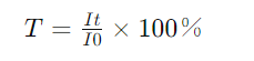 透光度(T)是指透射光强度(It)与入射光强度(I0)的比值,用百分数表示,透光度(T)是指透射光强度(It)与入射光强度(I0)的比值,用百分数表示。表示如下: