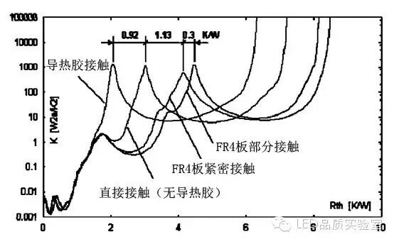 常规的,芯片、支架或基板、测试辅助基板或冷板这三层的热阻和热容相对较小,而固晶层和导热连接材料的热阻和热容相对较大。