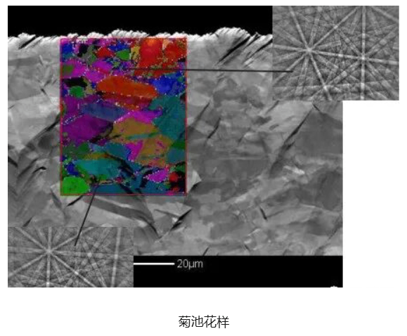 3.结果:铜合金晶粒结构的细节清晰可见,包括晶粒取向关系、晶界类型、再结晶晶粒等信息。可观察到铜合金样品表面清晰的菊池花样,这表明该样品经过氩离子束研磨抛光后制备质量非常好。晶粒取向分布图和晶粒尺寸图像进一步验证了样品的高质量,为深入理解铜合金的微观结构和性能提供了有力支持。