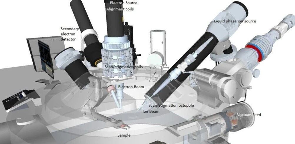 由于离子轰击衬底会产生二次电子,通过扫描电子显微镜(Scanning Electron Microscope, SEM)可以监测二次电子,从而获得样品表面的形貌图。这种同时具备FIB加工和观测功能的系统通常被称为双束系统,例如FIB-SEM双束系统和FIB-TEM双束系统。金鉴实验室具备Dual Beam FIB-SEM业务,包括透射电镜( TEM)样品制备,材料微观截面截取与观察、样品微观刻蚀与沉积以及材料三维成像及分析等,如需进行专业的检测,可联系金鉴检测顾问188-1409-6302。
