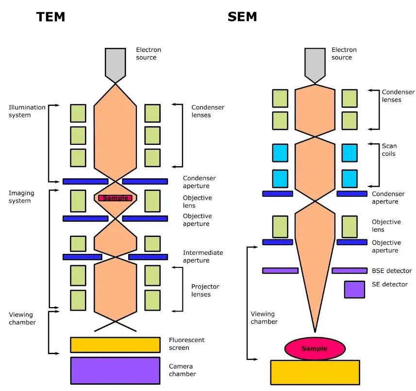 电子枪(常见类型有钨丝、六硼化镧或场发射)发射高能电子,能量通常在60 - 300 keV之间。这些电子经过聚光镜聚焦,形成平行的电子束,为后续的成像和分析提供稳定的电子源。