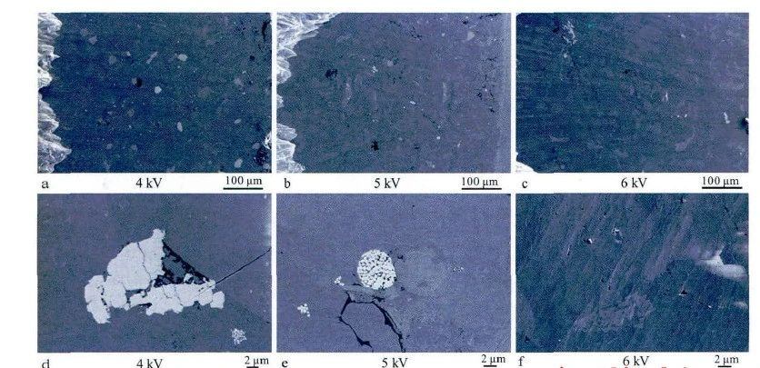 实验中使用的仪器包括热场发射扫描电镜、氩离子抛光仪和精密切片机。氩离子抛光通过高压电场使氩气电离产生离子态,然后在加速电压的作用下,氩离子高速轰击样品表面,实现逐层剥蚀和抛光效果。
