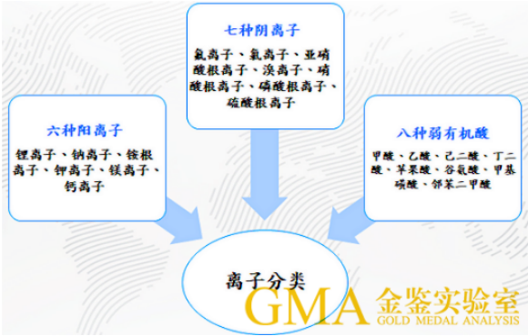 3. 八种弱有机酸:甲酸、乙酸、己二酸、丁二酸、苹果酸、谷氨酸、甲基磺酸、邻苯二甲酸。金鉴实验室在离子污染物的分类和分析方面具备丰富的经验,能够为客户提供全面的测试服务,确保每一类污染物都能得到有效监测和评估。