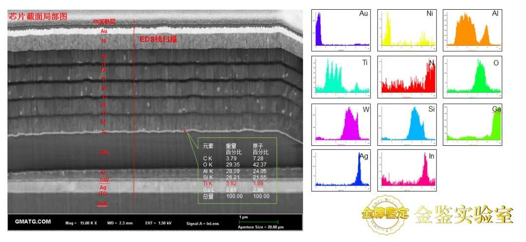 金鉴实验室与扫描电镜结合使用的X射线能谱分析(EDS)技术,能够提供焊盘表面成分分析及污染物元素分析。不同的电子束扫描方式,能谱仪可以进行表面的点分析、线分析和面分析,获取元素分布信息。通过精确的元素分布信息,金鉴实验室能够帮助客户识别可焊性不良的根本原因。