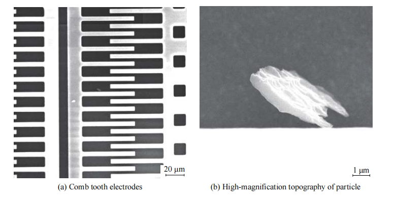 梳齿电极间的颗粒