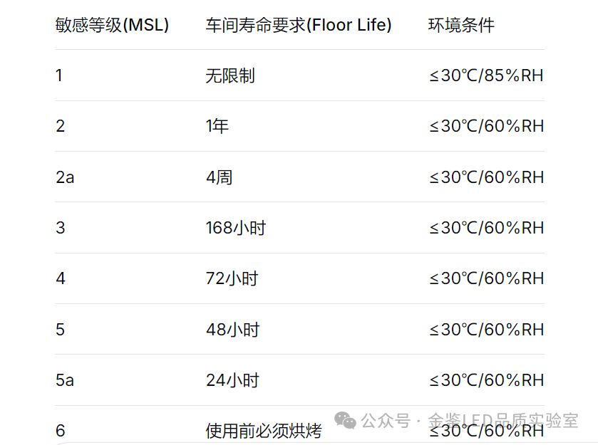 为管理这一风险,行业采用湿度敏感等级(MSL)对元器件进行分类。根据广泛接受的JEDEC标准,MSD被分为多个敏感等级: