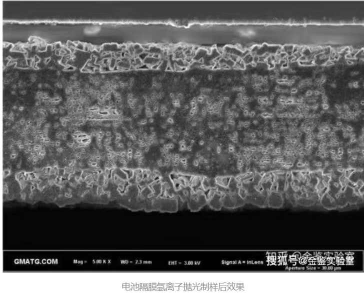 3.电池隔膜的应用效果电池隔膜的氩离子束抛光效果图清晰地展示了隔膜材料的孔隙结构和表面特性。隔膜的孔隙结构和表面特性对其离子传输性能和机械稳定性具有重要影响。氩离子束抛光技术能够清晰地展示这些微观结构特征,从而为研究人员提供准确的分析数据。例如,通过观察隔膜的孔隙结构,研究人员可以评估隔膜的离子传输性能和机械稳定性,进而优化隔膜材料的设计和制备工艺,提高电池的性能和寿命。