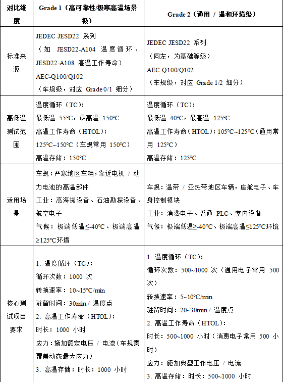 AEC-Q102测试与Grade 1/2高低温对应表