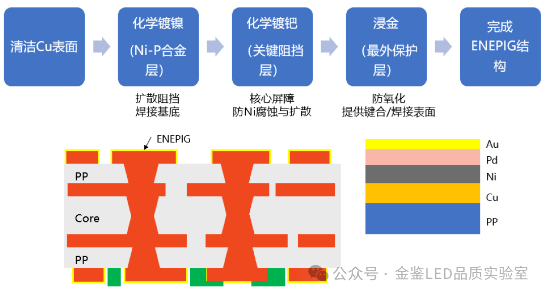 在PCB板或封装基板的制造过程中,表面处理工艺虽然不直接体现在最终产品的外表,但对后续焊接的可靠性以及芯片连接的稳定性起着决定性作用。近年来,一种名为ENEPIG(化学镀镍钯浸金)的工艺,因其卓越的综合性能,在高端电子封装领域得到广泛应用。金鉴实验室作为专注于光电半导体领域的科研检测机构,能够对芯片进行严格的检测,致力于提供高质量的测试服务,为芯片在各个领域的可靠应用提供坚实的质量保障。