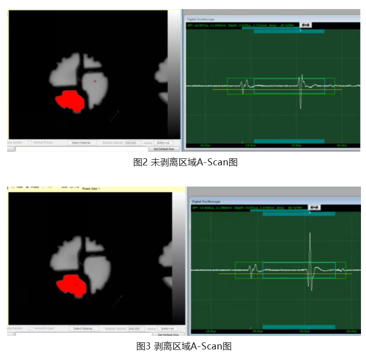 2.SAT软件误判超声波SAT是按照固定的参数来判定的,简单来说达到一定参数的反波相位信号均会被软件算法判定为剥离分层。但根据声扫测试原理可知只要超声波从大的声阻抗材料进入小的热阻抗材料界面时,都会发生反相,比如从铜到树脂会发生反相,波形朝下,但是并不是剥离。因此,检测人员在测试前应充分了解样品内部结构以及材料构成,以便加以区分判定,若仅仅从波形朝下来判断剥离的话,是不准确且不严谨的。