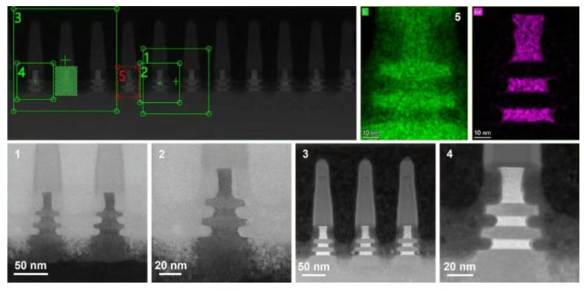 物理失效分析通常从开盖开始。针对常见的树脂封装,基本思路是通过化学方法去除封装树脂,暴露芯片表面。拿到芯片表面后,很多故障仍然不可见,因为真正的问题可能埋在多层互连和介质下面。因此需要进行逐层去层——将金属层和层间绝缘层一层一层去除,尽量保持表面平整、层次清晰。先进的去层工艺强调系统性、平整性和终点控制,否则表面一旦起伏过大,原本很小的缺陷就会被表面不平整的干扰所掩盖。接下来,聚焦离子束是关键工具之一。它通常使用镓离子束,能将离子束聚焦到数百纳米量级,对指定区域进行亚微米级别的蚀刻。它不仅可以切出截面,还能沉积导电膜或绝缘膜,甚至用于局部电路修补。聚焦离子束的作用是“只处理怀疑的那一小块区域”。配合扫描电子显微镜,可以快速找到表面和近表面电学故障的物理根源。如果需要继续向纳米甚至原子尺度深入,就要用到透射电子显微镜和能谱分析。先用聚焦离子束从目标区域切出超薄样片,再放入透射电镜进行细节观察。透射电镜可以显示材料内部的结构和形貌特征。能谱分析则是在显微观察的基础上增加“元素分布信息”——不仅能看到“这里有裂纹”,还能进一步分析:这里是否混入了异常元素?阻挡层是否缺失?金属组成是否正确?