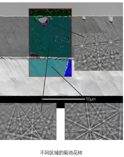 3.结果:经过氩离子抛光技术处理后的多层结构半导体材质样品,每层都能清晰地观察到,焊球的结构清晰可见。菊池花样表明制备出的样品表面质量高,为后续的EBSD分析提供了高质量的数据支持。金鉴实验室在样品制备方面积累了丰富的经验,能够为客户提供专业的样品制备服务,确保样品质量达到最佳状态,从而提高后续测试的准确性。