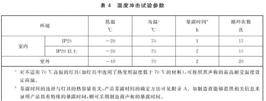 参照表4,根据灯具分类选择相应的试验温度、暴露时间、循环次数。