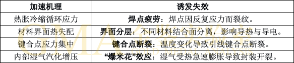 其中: N_f 为达到失效的循环次数 ,ΔT 为温度变化范围 ,A和b为材料相关常数通过加大ΔT(测试温差大于实际使用条件),可以在较短时间内模拟长期使用效果。