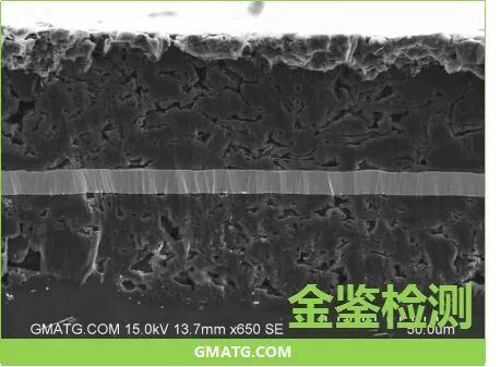 而经过金鉴实验室氩离子抛光后,损伤层被完全去除,内部结构清晰可见,孔隙度也能够准确测量,从而为材料的吸液性和寿命分析提供了可靠依据。