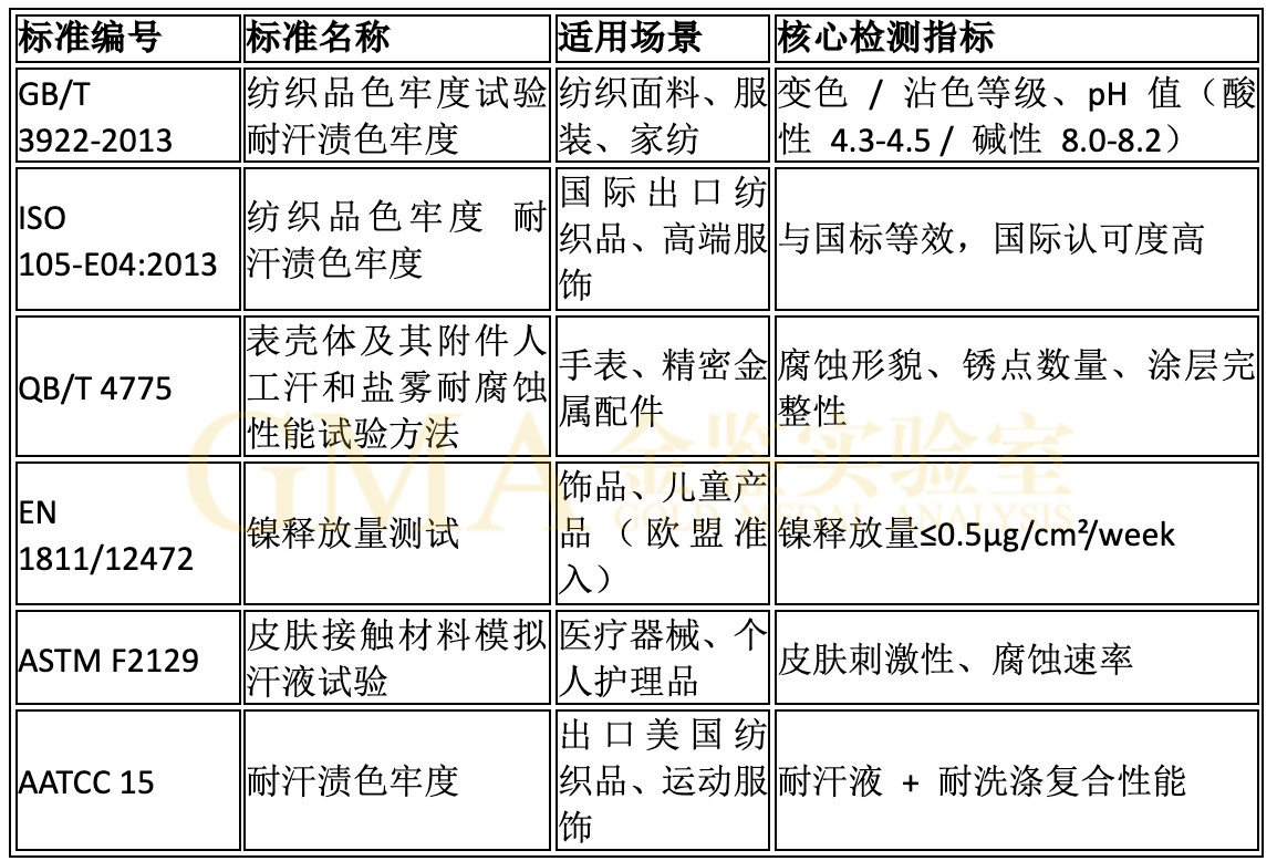 测试过程:汗液配方、环境条件、试验时长、所用设备型号