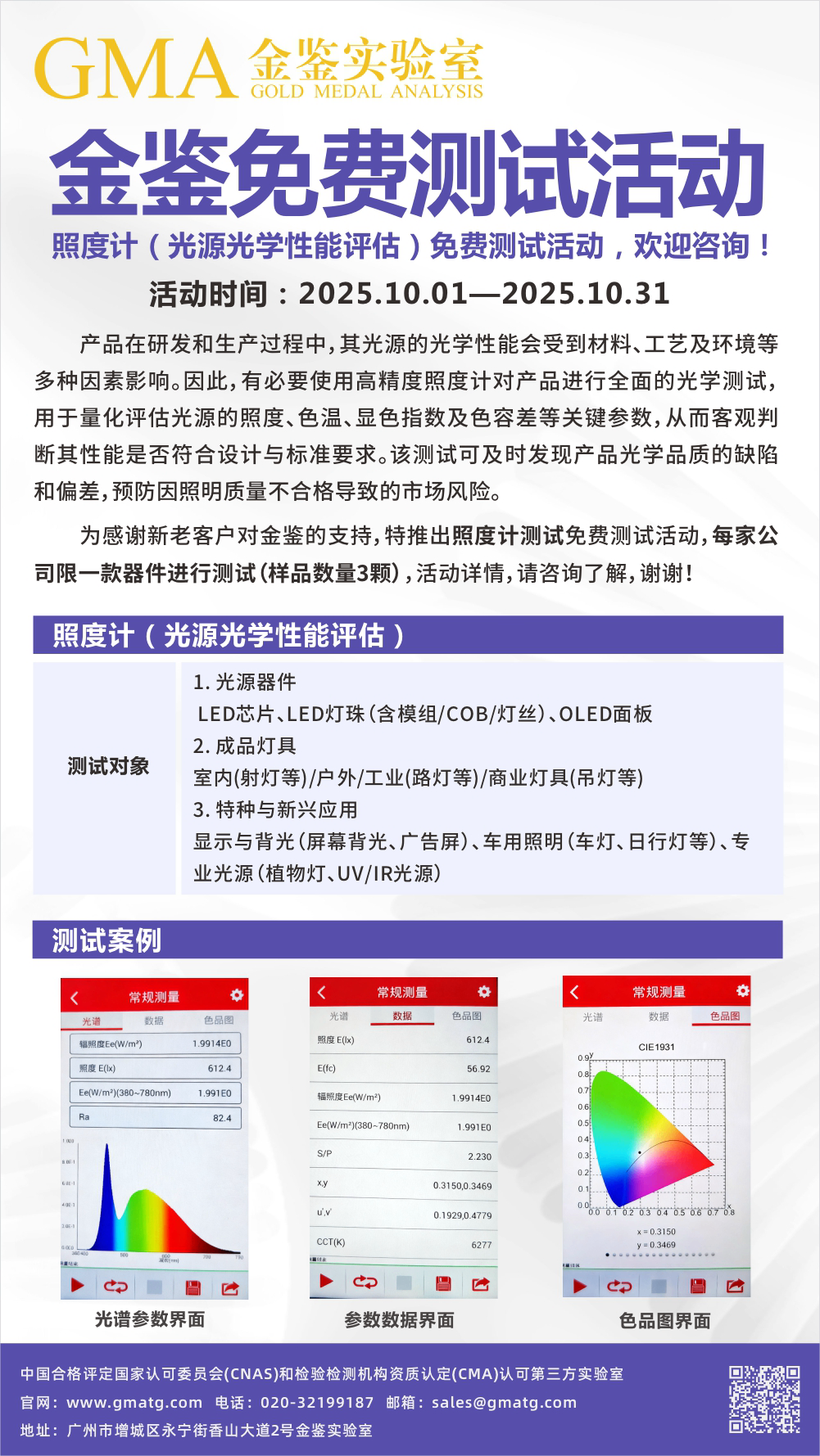 金鉴照度计(光源光学性能评估)免费测试活动,欢迎咨询! 发布时间:2024-04-16