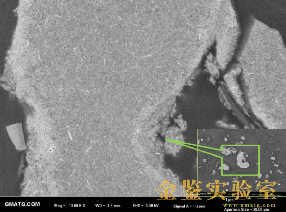 而采用氩离子抛光设备处理后,样品中的颗粒被整齐切开,截面平整均匀,非常便于内部结构的观察和精确测量。在更高放大倍数下,颗粒内部的微观结构清晰可见,为材料分析提供了可靠的表征基础。金鉴实验室利用氩离子抛光能够有效去除样品表面的机械加工痕迹和损伤层,使样品表面更加平整、光滑,从而提高分析的准确性和可靠性。如需专业检测,可联系金鉴检测顾问189-2421-2773。