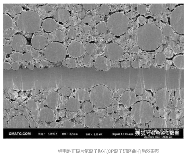 锂电池正极片氩离子抛光(CP离子研磨)制样后效果图