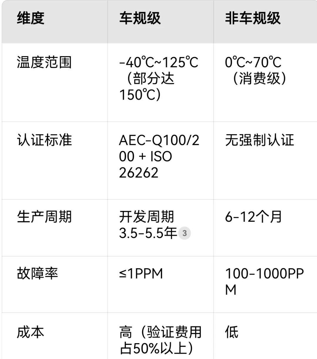 车规级产品要求供应商能够稳定供货10年以上,且不同批次产品的一致性极高,需要通过多批次的AEC-Q验证。而非车规级产品的供应链相对灵活,对批次一致性的要求也较低。