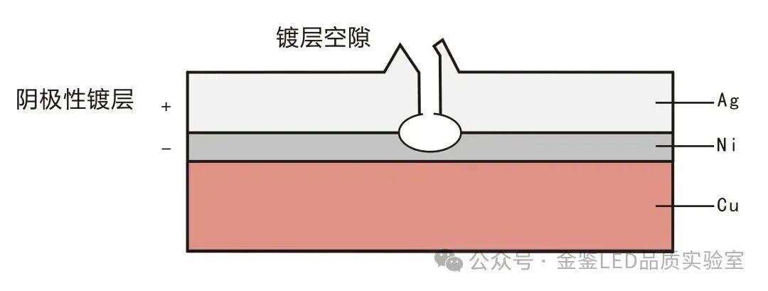 2. 电镀质量不佳镀层质量的优劣主要决定于金属沉积层的结晶组织,一般来说,结晶组织愈细小,镀层也愈致密、平滑、防护性能也愈高。这种结晶细小的镀层称为“微晶沉积层”。金鉴指出,好的电镀层应该镀层结晶细致、平滑、均匀、连续,不允许有污染物、化学物残留、斑点、黑点、烧焦、粗糙、针孔、麻点、裂纹、分层、起泡、起皮起皱、镀层剥落、发黄、晶状镀层、局部无镀层等缺陷。在电镀生产实践中,金属镀层的厚度及镀层的均匀性和完整性是检查镀层质量的重要指标之一,因为镀层的防护性能、孔隙率等都与镀层厚度有直接关系。特变是阴极镀层,随着厚度的增加,镀层的防护性能也随之提高。如果镀层的厚度不均匀,往往其最薄的地方首先被破坏,其余部位镀层再厚也会失去保护作用。针对LED领域,金鉴实验室提供包括电镀镀层质量鉴定等一站式服务,涵盖各个环节,满足客户多元化的需求。