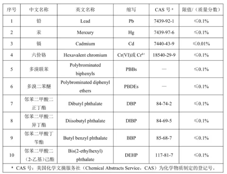 RoHS指令限制的有害物质